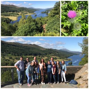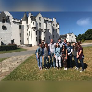 - After a quick but fun visit to Blair castle, we headed to Inverness driving through the Highlands where we enjoyed wide open vistas of tall green/brown Bens and long Glen views. The mini bus was full of singing as Jeremy had everyone request 5 of their favorite songs for a BYG playlist.