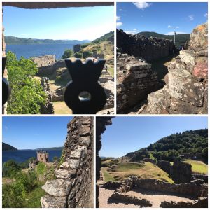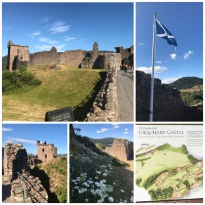 - Touring the ruins of Urquhart castle on the banks for Loch Ness. We saw this castle from the boat but did not realize how big and beautiful it was. This castle controlled northern Scotland as it was in a strategic location down the great glen towards Fort Williams to the South. It was blown up by the Grant clan who were loyal to the Protestant kings of the house of Orange to prevent the Catholic McDonalds (Jacobite supporters) from reclaiming their ancient seat of power. Not since the 13th Century has an Englishman set foot in Urquhart in anger.
