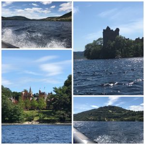 - Loch Ness speed boat in search of Nessie or the Loch Ness monster…BYG was surprised and excited about the trip. We saw two castles (one an event venue not for £25K a day), where a German WWII plane wrecked but was persevered by the cold peat waters, stopped over the deepest part Loch Ness 850 deep feet (enough to cover up the Eiffel Tower of Paris), Urquhart Castle (from ancient Highlanders and Jacobite forces) and cranking the two 150hp motors to full for speed, donuts, jumping wakes and flat out moving in the water. It was the way to tour Loch Ness on sunny and hot warm day (would not suggest for a rainy windy cool day).